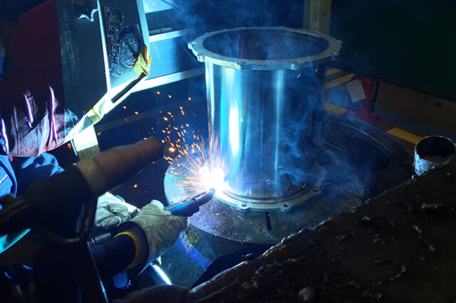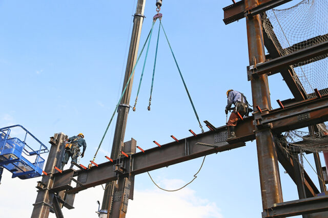 当社は、高い溶接技術を駆使した鍛冶工事や溶接工事、プラント工事などをお届けしている会社です。他にも加工した重量物の運搬・搬入・設置工事や、鉄骨・足場などの鳶工事にもご対応しております。
